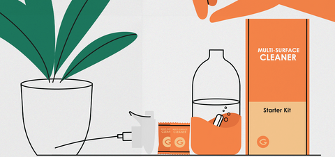 Begin your eco-friendly cleaning journey with the Multi-Surface Cleaner Starter Kit. This kit includes a refillable glass spray bottle and six water-soluble tablets, offering a sustainable and cost-effective solution for your cleaning needs.